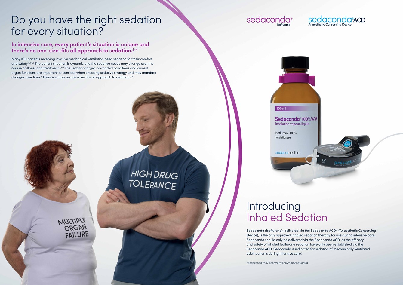 To be able to make it a standard therapy, and actively market inhaled sedation, Sedana Medical developed their own product and carried out a large study. In July 2021 they received marketing approval for sedation in the ICU using the Sedaconda (isoflurane) administered only via the Sedaconda ACD medical device.